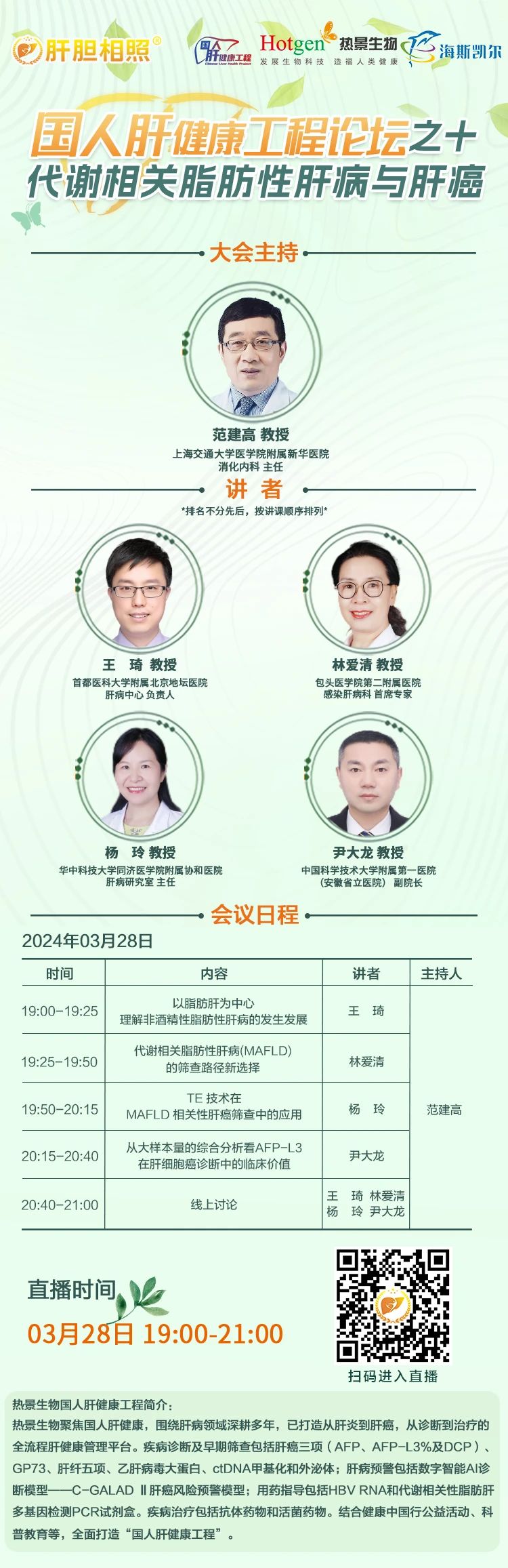直播預(yù)告 | 國(guó)人肝健康工程論壇之十——代謝相關(guān)脂肪性肝病與肝癌