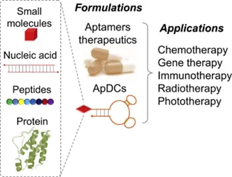 Aptamer是一段經(jīng)體外篩選得到的,折疊成特殊三維結(jié)構(gòu)的短單鏈寡核苷酸,能特異性結(jié)合較大范圍的目標(biāo),包括蛋白質(zhì)、小分子、金屬離子、病毒、細(xì)菌和全細(xì)胞,其高特異性和結(jié)合親和力可達(dá)到抗體水平。相比抗體藥物,核酸適配體具有體積小、較低免疫原性、無細(xì)胞化學(xué)合成以及較強(qiáng)組織穿透力、易修飾成本低等優(yōu)點,在疾病診斷、治療和預(yù)防中有著廣泛的藥物應(yīng)用潛力。但其三維構(gòu)象受pH影響較大,親和性高度依賴于溶液性質(zhì)。第一款 Aptamer 藥物Pegaptanib于2004 年獲FDA批準(zhǔn)。它是一種具有29個核苷酸的RNA適配體,5’端的聚乙二醇部分可延長其在人體內(nèi)的停留時間。Pegaptanib 通過空間結(jié)構(gòu)與血管內(nèi)皮生長因子(VEGF)結(jié)合,抑制血管生成達(dá)到治療效果,因此被開發(fā)用于治療濕性年齡相關(guān)性黃斑變性。
