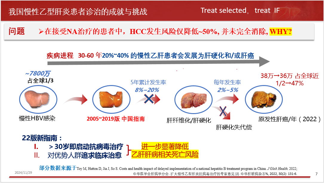 本次會(huì)議授課專(zhuān)家蕓集,在實(shí)驗(yàn)室能力建設(shè)方面主題論壇中, 北京大學(xué)基礎(chǔ)醫(yī)學(xué)院魯鳳民教授做了《從pgRNA病毒樣顆粒的產(chǎn)生看HBV新標(biāo)識(shí)血清RNA的臨床應(yīng)用》主題報(bào)告,報(bào)告以“我國(guó)慢性乙型肝炎患者診治的成就與挑戰(zhàn)”內(nèi)容展開(kāi),乙型肝炎病毒的發(fā)現(xiàn)、病毒學(xué)特征;乙型肝炎病毒感染后的階段性疾病進(jìn)展及結(jié)局;HBV 的感染復(fù)制周期及核苷(酸)類(lèi)藥物(NAs)抗病毒治療的靶點(diǎn);在接受NA治療的患者中,HCC發(fā)生風(fēng)險(xiǎn)僅降低~50%, 并未完全消除;新版指南(2022)擴(kuò)大抗病毒治療后,我國(guó)92%的慢性感染者將得到治療;臨床治愈可顯著改善慢性乙肝患者(慢性HBV感染者、HBV相關(guān)肝癌患者)遠(yuǎn)期不良結(jié)局;(九游J9)真人游戲第一品牌處在核苷(酸)類(lèi)藥物為主要治療藥物的抗病毒時(shí)代,獲得完全病毒學(xué)應(yīng)答的患者,仍有較高的HCC發(fā)生風(fēng)險(xiǎn)。