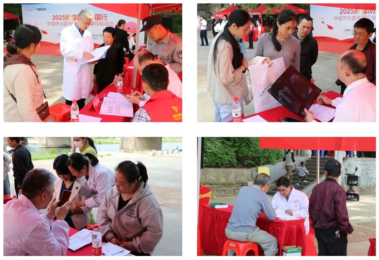 現(xiàn)。疃ü易裳、發(fā)放防癌宣傳材料等形式,吸引了許多居民駐足參與,專家們熱情接待每一位前來咨詢和就診的居民,耐心細(xì)致地為有疑問的居民提供專業(yè)的腫瘤防治知識咨詢,提出診療建議,同時活動現(xiàn)場還提供了彩超檢查、生化全套、免費腫瘤篩查等服務(wù)。據(jù)統(tǒng)計,當(dāng)天共完成篩查150余人次,營造了全民防癌抗癌的良好氛圍。