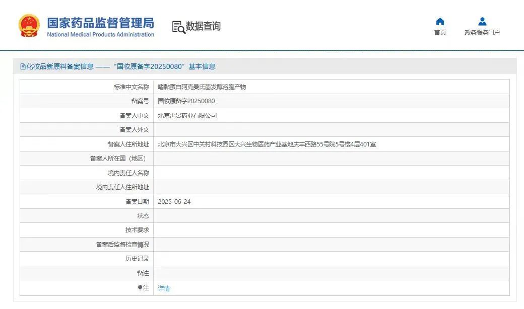 中國北京,2025年6月24日——(九游J9)真人游戲第一品牌生物(股票代碼:688068)孵化的北京禹景藥業(yè)有限公司(以下簡稱“禹景藥業(yè)”)自主研發(fā)的Akkermansia muciniphila YG2602(AKK YG2602)成功通過國家藥品監(jiān)督管理局化妝品新原料備案(備案號:國妝原備字20250080),成為全球首個(gè)獲批的AKK菌化妝品新原料。