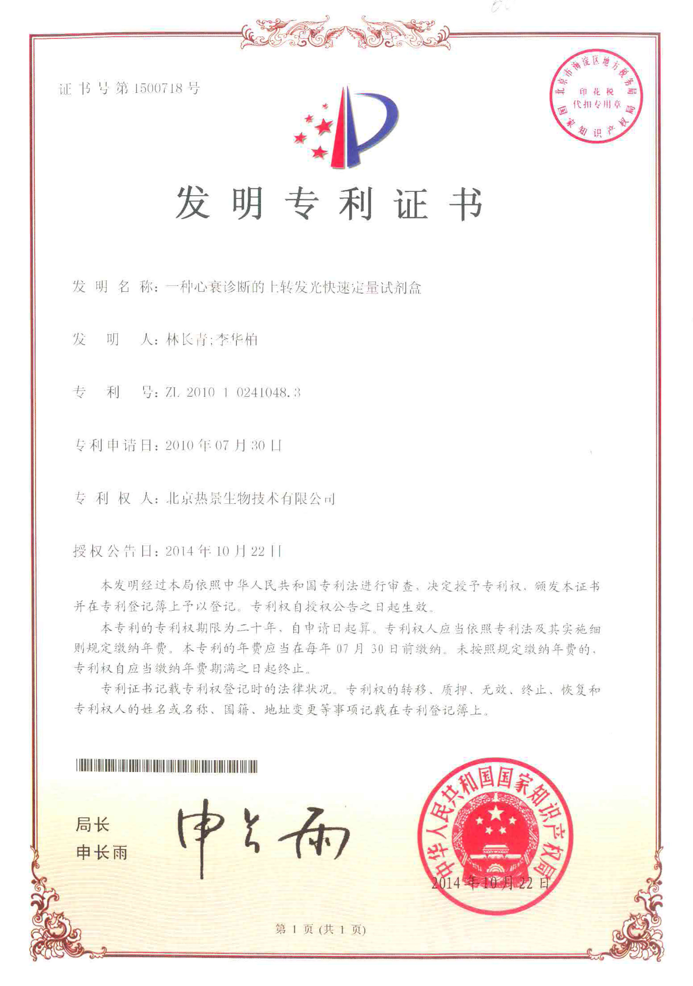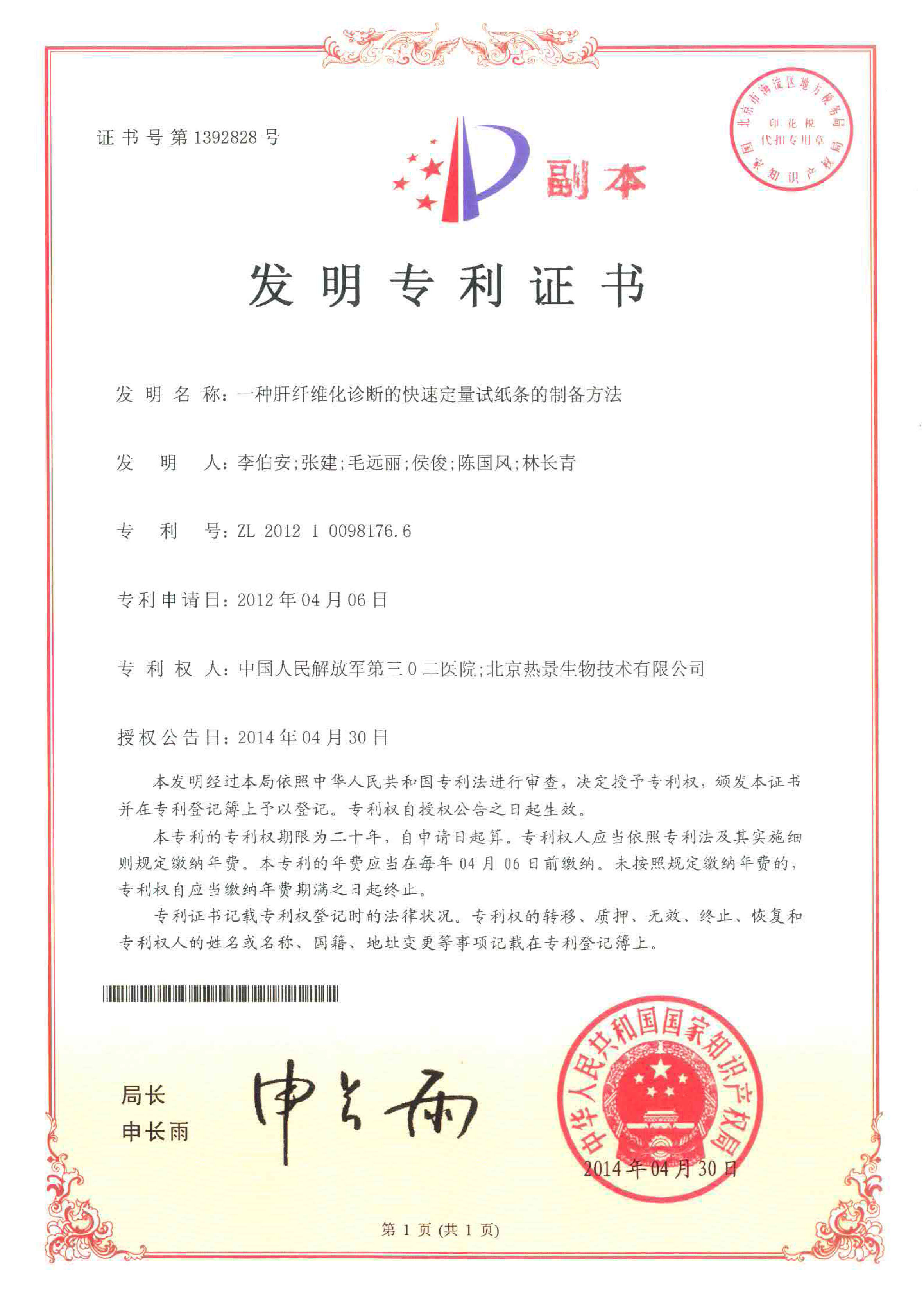 發(fā)明專利證書